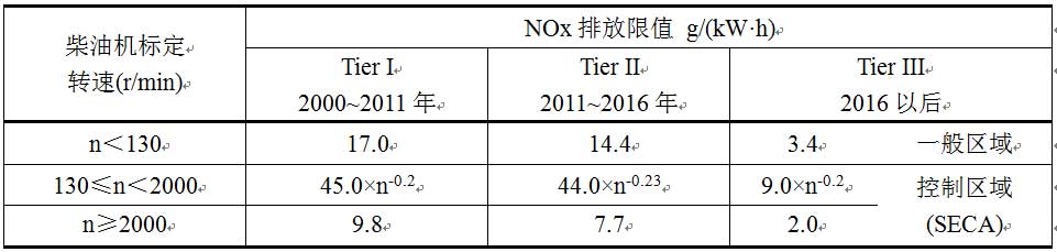 表1 IMO柴油机排放主要污染物控制����� �������Ƴ������������ �������Ƴ������������ �������Ƴ������������ �������Ƴ������标准