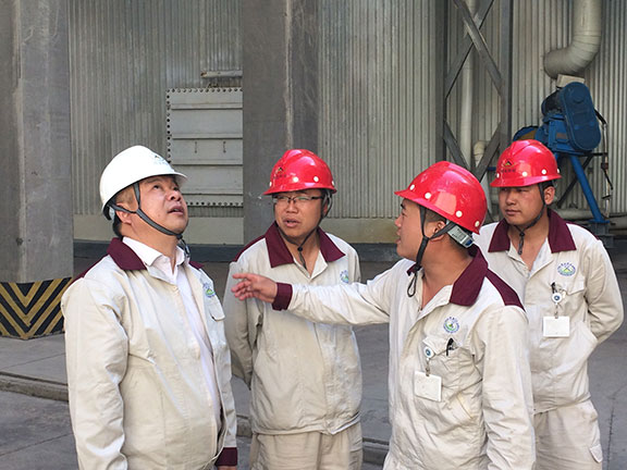 图为特许事业中心领导王万秋总����� �������Ƴ������������ �������Ƴ������������ �������Ƴ����������� �������Ƴ������莅临现场问询烟道膨胀节检修情况