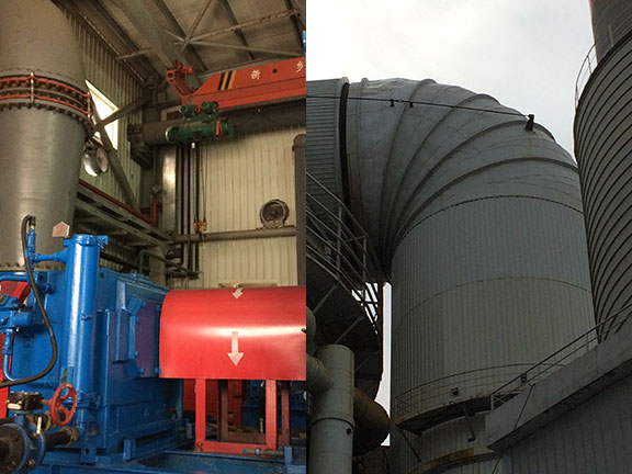左图为增加轴流风机后的#2新增浆����� �������Ƴ������������ �������Ƴ������������ �������Ƴ������������ �������Ƴ�������液循环泵房,右图为修复后的#1一级吸收塔出口烟道����� �������Ƴ������������ �������Ƴ������������ �������Ƴ������������ �������Ƴ�������